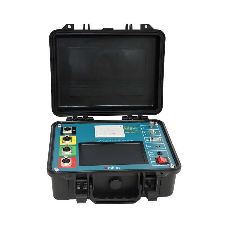 Тестер резистивного струму розрядника з оксиду цинку Weshine® для тестера резистивного струму може перевіряти проблеми з виявленням живлення або збою живлення або розрядниками з оксиду цинку різних рівнів напруги, а також своєчасне виявлення небезпечних дефектів, таких як затухання внутрішньої ізоляції та старіння клапана.